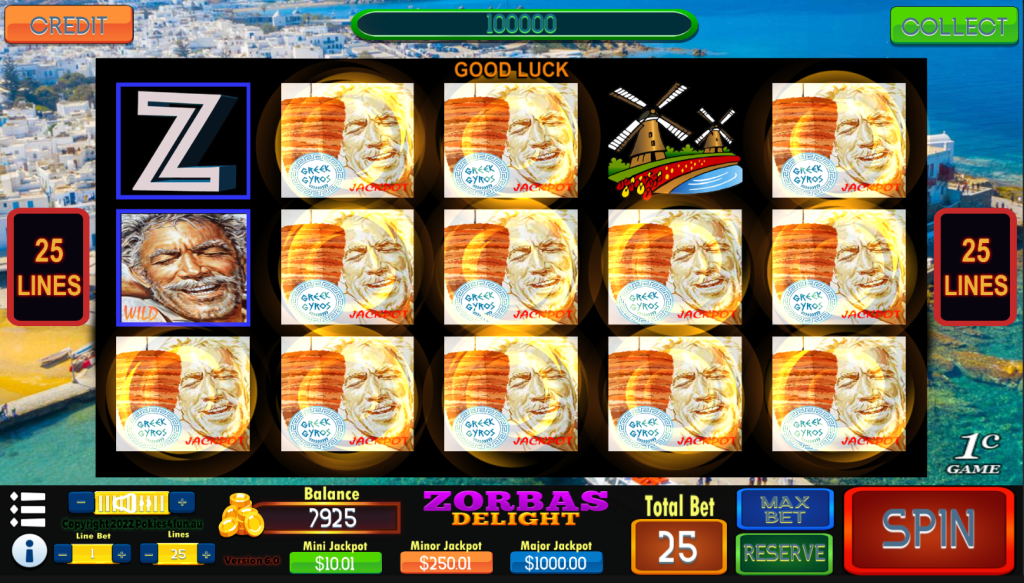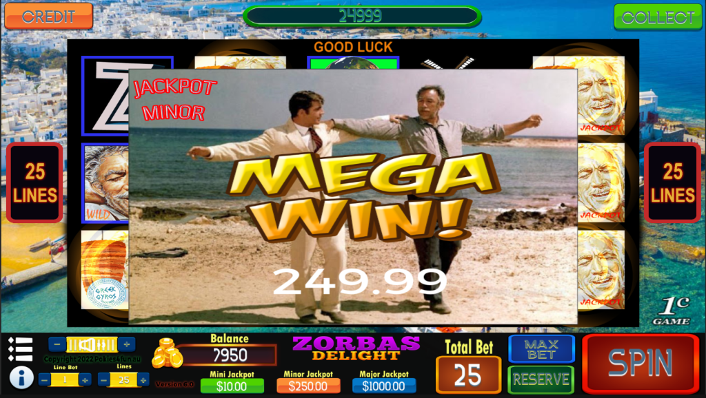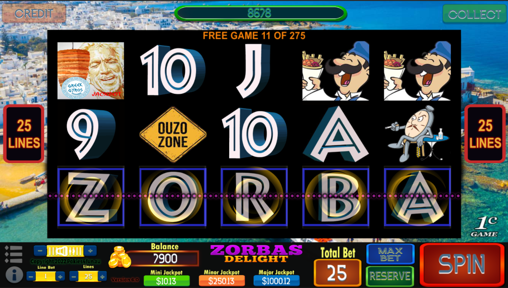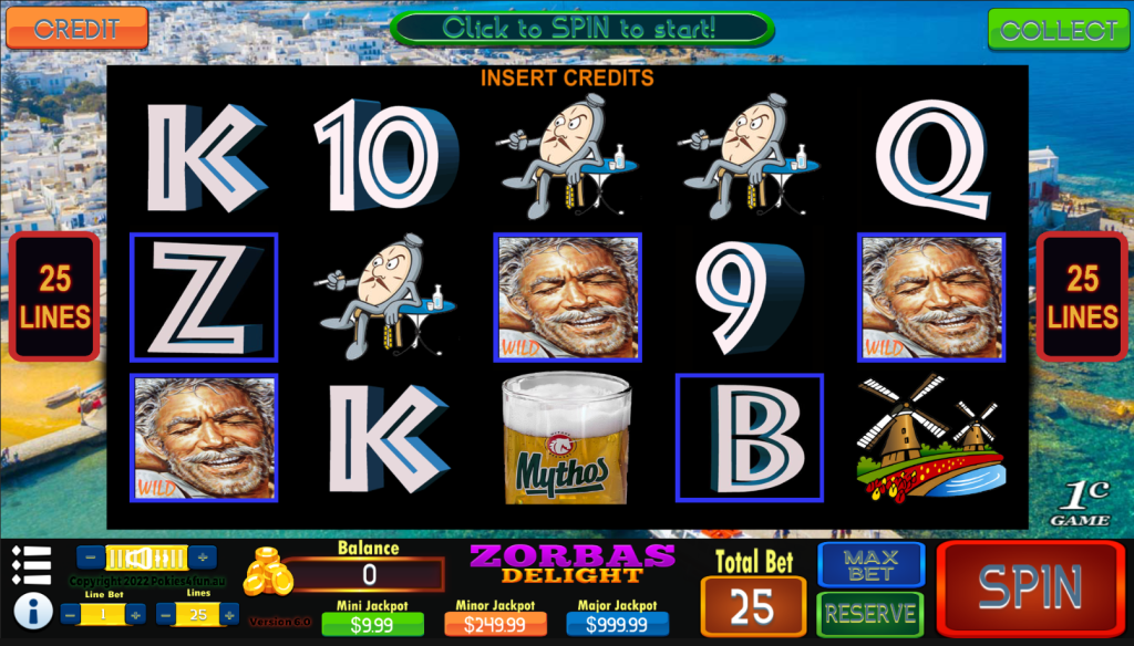Grab yourself an Ouzo, sit back play, dance and enjoy, Zorbas Delight a Pokies4fun presentation.